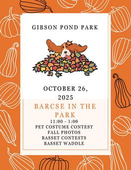 Bring your family and hounds to Gibson Pond Park on Sunday, October 26th from 11 - 1. There are plans for a Halloween costume contest for basset hounds and other canine friends, a waddle around the pond, a 50/50 raffle, and some door prizes. We will also have some snacks and drinks.